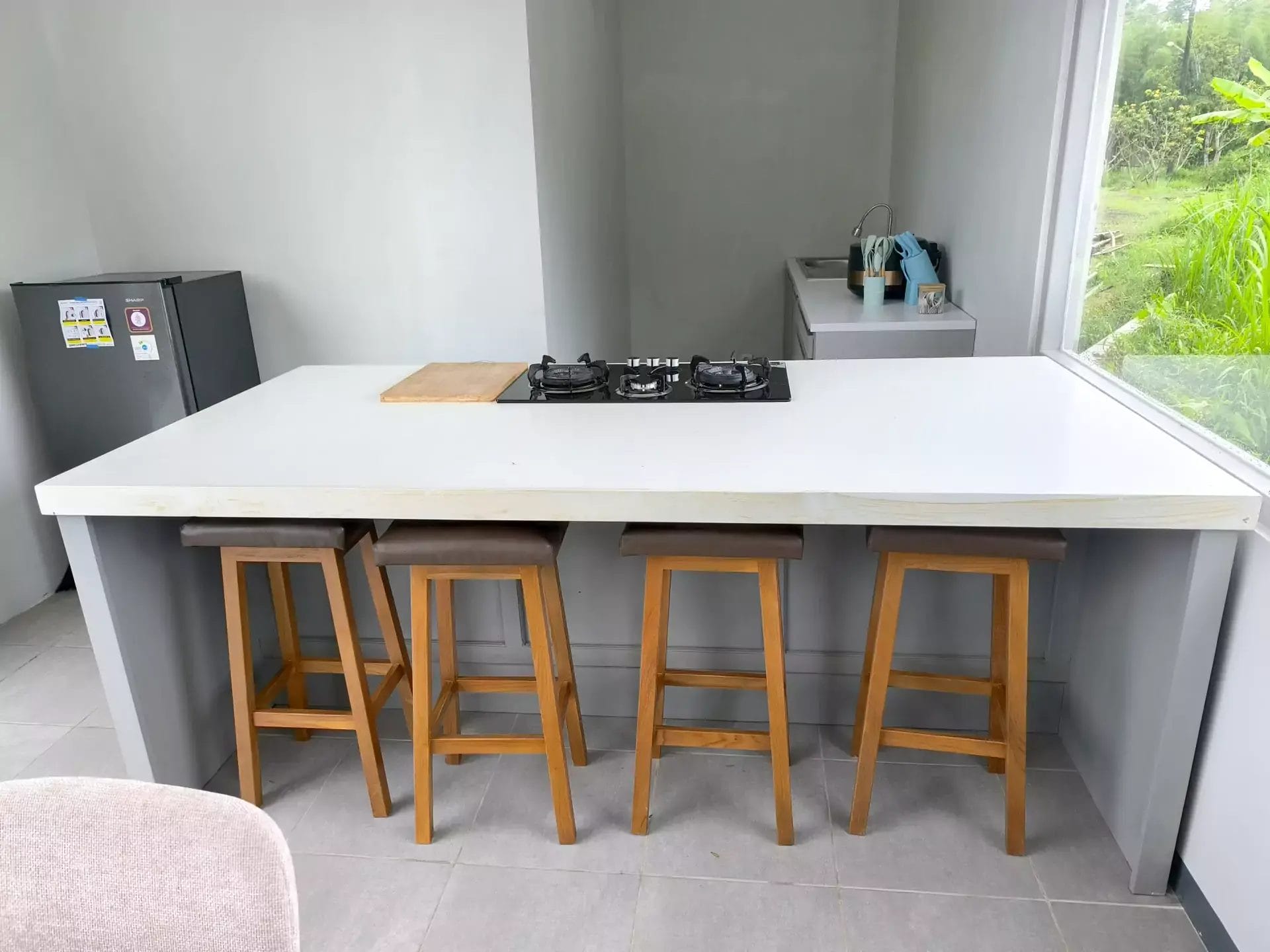 - Fasilitas: Private Pool, 10 Bed Queen Size, AC tiap kamar, Water heater 5 Bathroom double shower, Bar Kitchen , Kitchen set, dining room , living room, view sawah, space yang luas